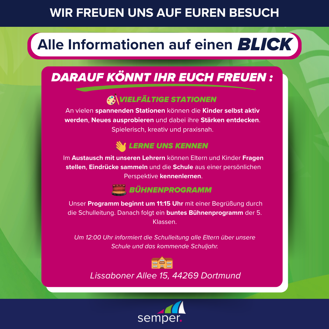 Darüber hinaus prägt ein reichhaltiges kulturelles und sportliches Schulleben den Alltag: Sommer- und Weihnachtskonzerte, Kammermusikabende, Chor, Kunst- und Kreativangebote, Leseförderung und vieles mehr. Auch sportlich sind wir stark: mit täglichem Pausensport, sehr guter Ausstattung, Fahrten wie der Ski- und der Windsurfexkursion sowie der jährlichen Teilnahme am Dortmunder Drachenbootrennen.
